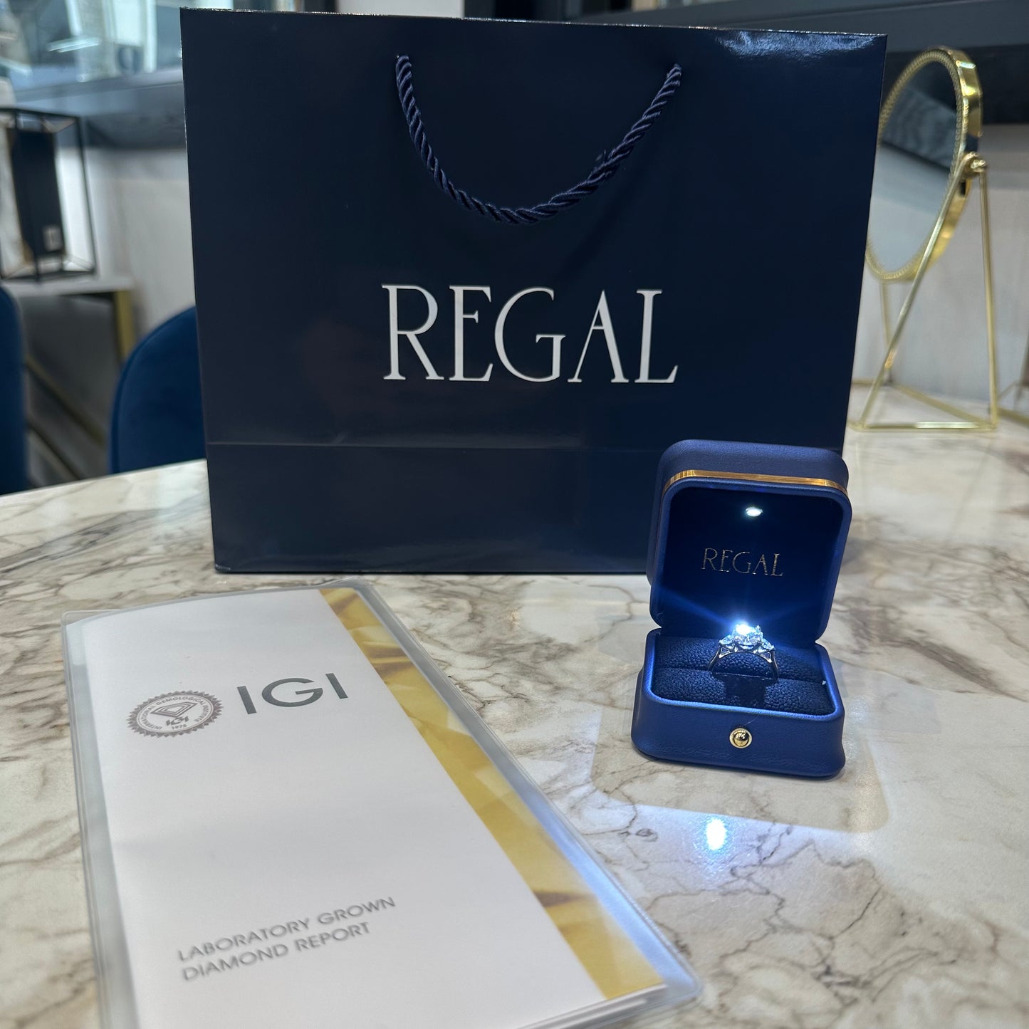 The Amelie ready-to-wear engagement ring is a masterpiece of elegance, crafted in luxurious 18k yellow gold and platinum. At its heart lies a brilliant 2.00ct lab-grown diamond, showcasing exceptional top colour (F) and top clarity (VS1) certified by - IGI LG668415289